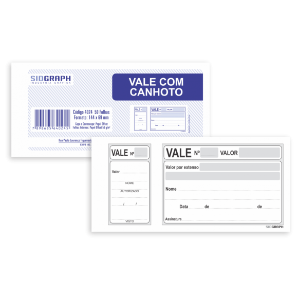 Detalhes: Vale com canhoto / Formato: 144mm x 69mm / Gramatura: 56g/m² / 50 Folhas