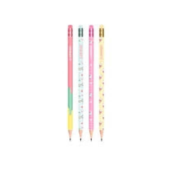 Lápis preto fantasia com borracha / Possui corpo com desenhos variados e redondo / Graduação: HB / Venda por unidade / Registro Inmetro: 007062/2018 OCP 0061.
