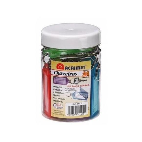 Cada chaveiro possui uma etiqueta interna para identificação da chave / 24 chaveiros / Cores sortidas