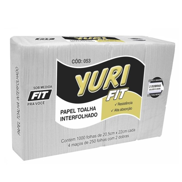 Detalhes: Papel Toalha Interfolhado / Fardo com 1000 folhas (4 maços de 250fls com 2 dobras) / Medidas: 22 cm x 20,5cm / Interfolha - 2 dobras