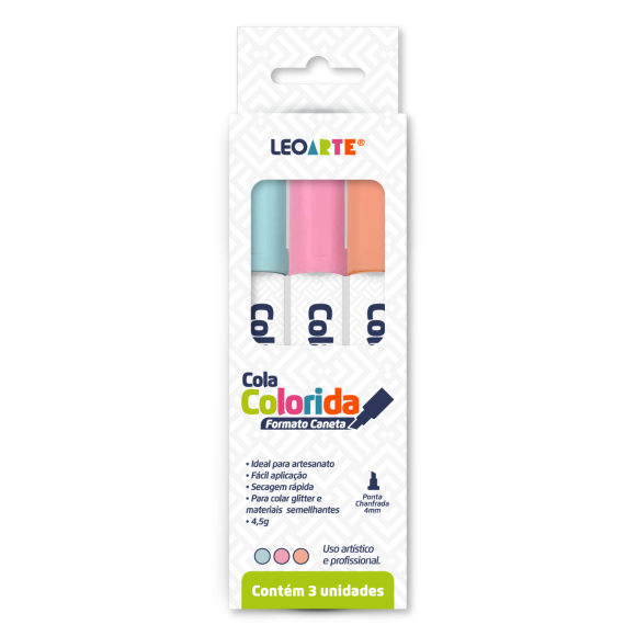 Deixe a sua imaginação ir mais longe com a Cola Colorida Formato Caneta LeoArte. É mais uma novidade inspirada nas tendências mundiais, para trazer o universo da criatividade para sua vida. Perfeita para colar glitter e outros itens que necessitam de um fundo colorido, esta cola é prática e precisa, funcionando como uma caneta posca. É só agitar antes do uso. Disponível nas cores azul, rosa e laranja, são de fácil aplicação e possui secagem rápida, ideal para artesanato e uso artístico profissional. A ponta chanfrada de 4mm facilita a aplicação e garante um acabamento detalhado e preciso em suas criações. Leve e prática, esta cola é essencial para quem adora trabalhos manuais e artesanato. Assim, seus projetos ganham vida e cor, garantindo um resultado vibrante.