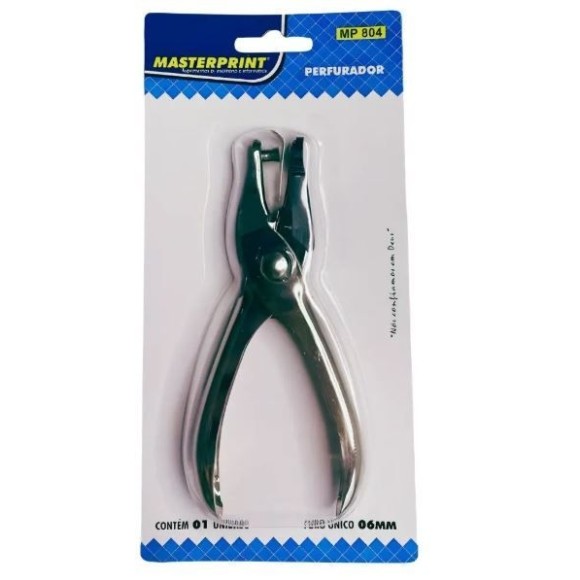 Perfurador de papel / 1 Furo 6mm / Perfura até 6 folhas 75g/m² / Composição: Metal galvanizado.