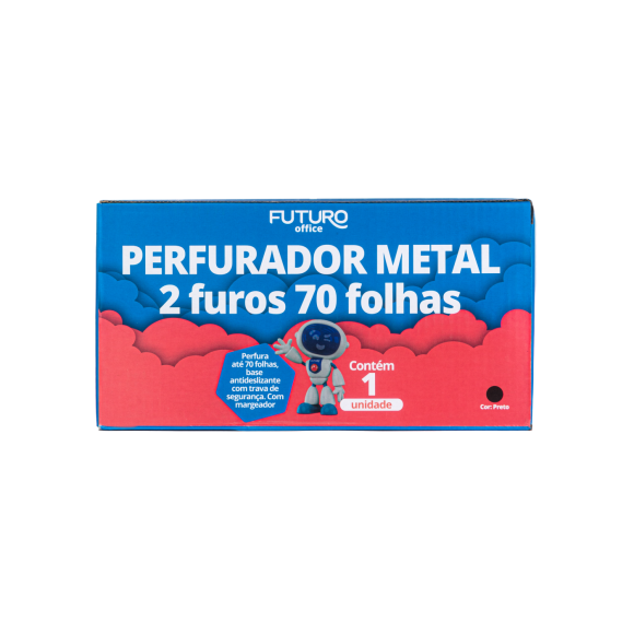 Perfurador de papel / 2 Furos / Perfura até 70 folhas / Base antideslizante / Com trava de segurança