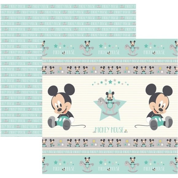 FOLHA SCRAPBOOK DECORADA 19327 BABY MICKEY 1 FITAS E ROTULOS TEC
