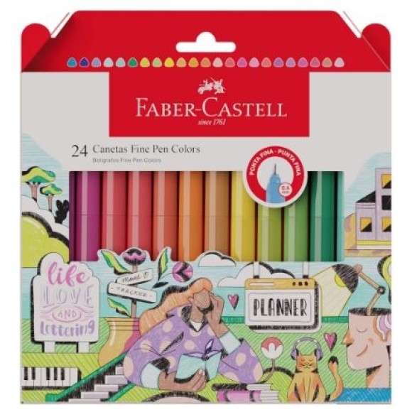 Especificação: Caneta Hidrográfica Fine Pen / Ponta ultrafina 0.4mm / Corpo Triangular Ergonômico / Embalagem com 24 cores sortidas / Produto Certificado INMETRO (Artigo Escolar/Segurança) – Registro 003638/2012.