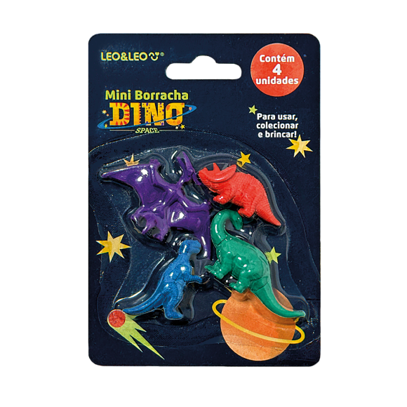 Especificação: Conjunto com diversas borrachas em formato de dinossauros / Feitas com materiais de alta qualidade para uma apagação eficiente / Tamanho compacto, fácil de transportar e usar / Ideal para uso escolar, em casa ou como item de colecionador / Perfeito para fãs de dinossauros e temas pré-históricos / Ótima opção de presente criativo e divertido / Embalagem com 4 unidades / Produto Certificado INMETRO (Artigo Escolar/Segurança) – Registro 000791/2024.