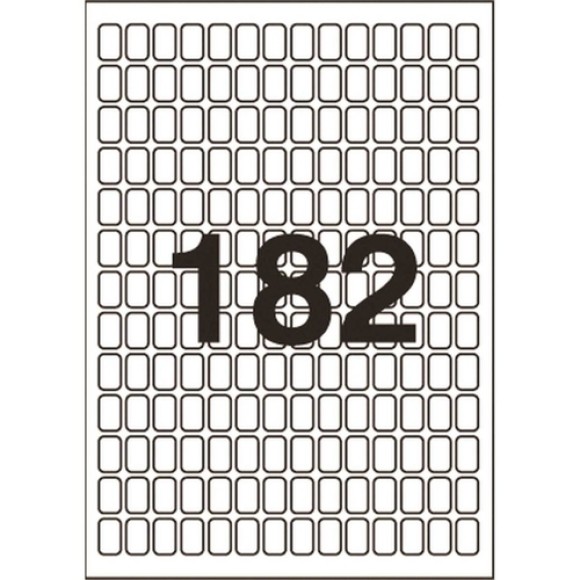Cor: branca / Tamanho da etiqueta: 8 x 103 mm / Etiquetas por folha: 182 / Embalagem com 12 folhas / Formato A5