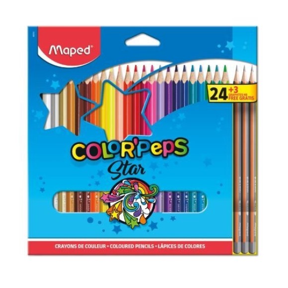 Especificação: Este kit indispensável para volta às aulas, em uma versão de alta qualidade projetada pela Maped. Desde desenhar em casa até colorir suas fichas na escola, esses lápis coloridos e brilhantes acompanham seu filho em todos os lugares! Os lápis de cor Color’Peps da Maped têm uma forma triangular específica que facilita para as crianças segurarem. Feitos de madeira, esses lápis têm uma ponta macia e resistente e são fáceis de apontar para um uso diário simples e confortável.