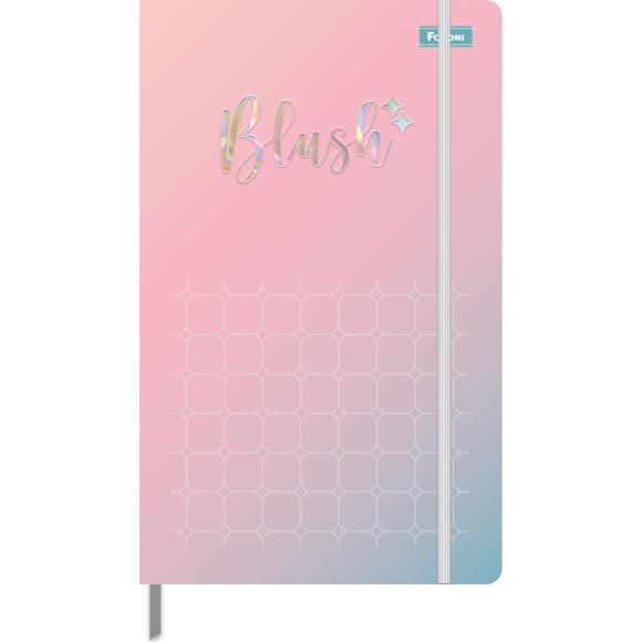 Capa dura / Capa com detalhe metalizado / Capa fechamento com elástico / Fitilho marcador de páginas / Folhas em papel creme e pontilhadas / Formato: 128mm x 208mm / Gramatura: 90g/m² / 80 folhas.