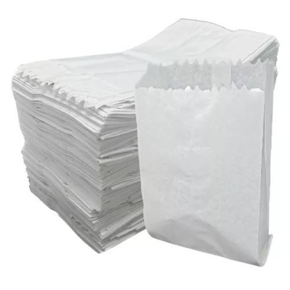 Sacos de Papel Branco tipo Pipoca 2. São de excelente qualidade, próprios para serem utilizados em festas, docerias, mercearias e etc... Serve para colocar doces, temperos e pipoca.