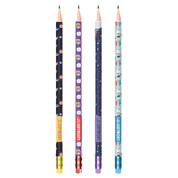 O Lápis Grafite HB Astronauta Leo&Leo possui formato redondo, mina de 2,2mm, virola, borracha colorida e 4 estampas diferentes / Produto Certificado INMETRO (Artigo Escolar/Segurança) – Registro 006752/2020 / Venda por unidade.
