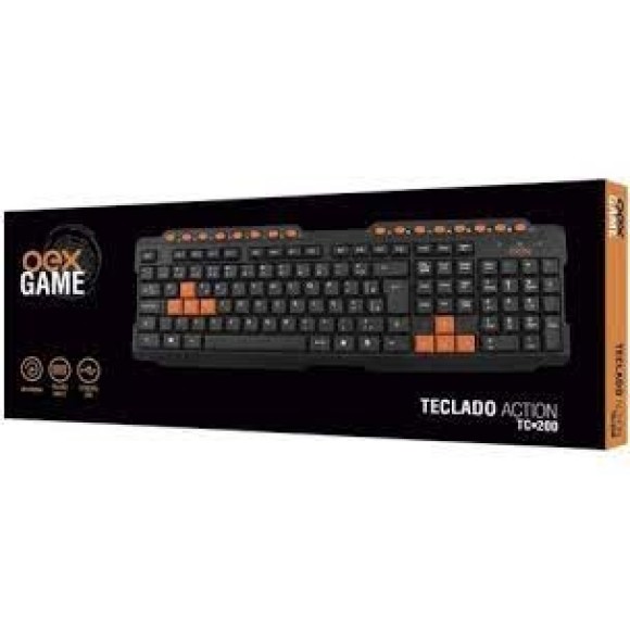 Teclado Action TC 200 / Conexão Usb / Padrão ABNT2 / Teclas Destacadas / 16 Teclas de Atalho / Cor: Preto com Laranja