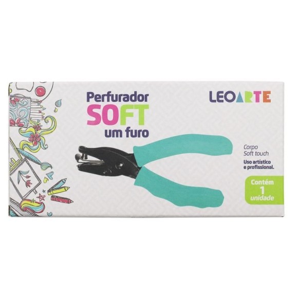 Especificação: 01 Furo / Perfura até 10 folhas de 75g / Corpo soft touch / Com depósito / Para uso em papéis e EVAs / Composição: aço inoxidável e resina termoplástica.