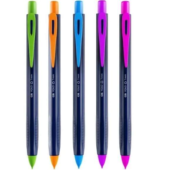 Lapiseira escolar grafite 0,7mm / Corpo triangular / Formato ergonômico / Com borracha no topo / Venda por unidade / Cores sortidas / Registro Inmetro: 007594/2023.