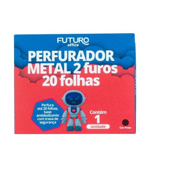 Perfurador de papel / 2 Furos / Perfura até 20 folhas / Base antideslizante / Com trava de segurança