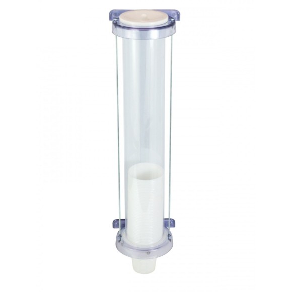 Dispenser de Copos Para Água de 180/200ml / Tubo Confeccionado em PVC Semi Rígido / Base Superior e Inferior Injetado em Plástico ABS Cristal Fumê / Possui Garras (Escova) em Polietileno de Baixa Densidade que Ajustam a Saída do Copo / As Varetas de Fixação de Uma Base à Outra São Confeccionadas em Aço Carbono Galvanizado / Acompanha uma Tampa Injetada em Plástico ABS e Kit Com 4 Parafusos e Buchas Para Fixação na Parede / Medidas: (AxLxP): 470mm x 130mm x 116mm